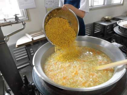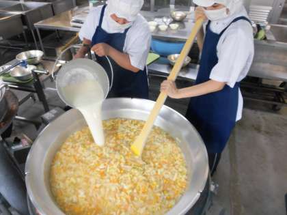 野菜をたっぷりと使っています。仕上げに使っているのは、大豆から作られた豆乳です。