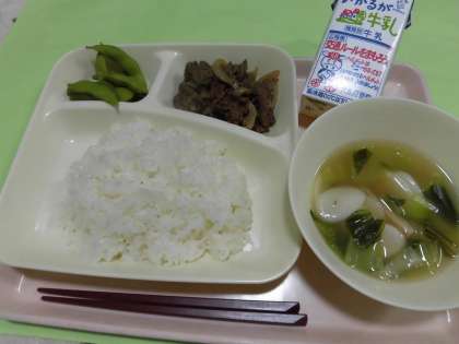 ・プルコギ ・トック ・えだまめ ・ごはん ・牛乳 です。