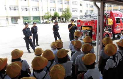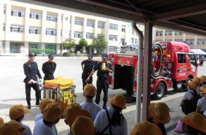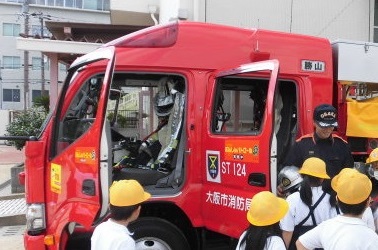 消防署の方による「消防車見学」(1年生〜3年生)がありました。