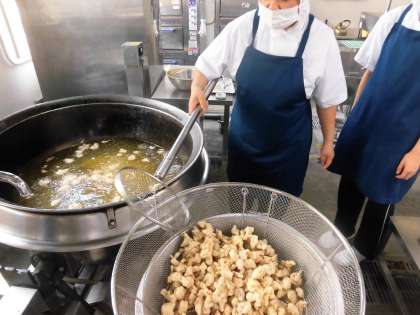 給食では、コチジャン、こいくちしょうゆ、ケチャップ、料理酒、みりんでヤンニョムを作っています。