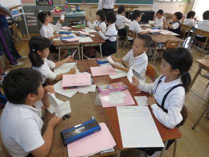 自分の紹介文を読んで、友だちから「良かった点を書いた交流カード」をもらって、みんなとてもうれしそうでした。