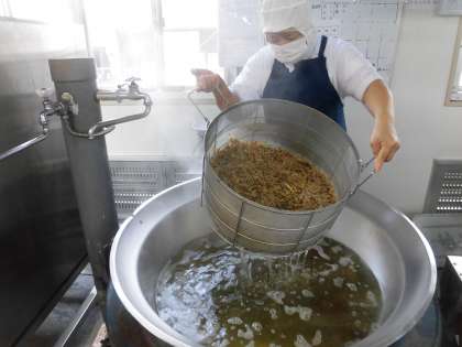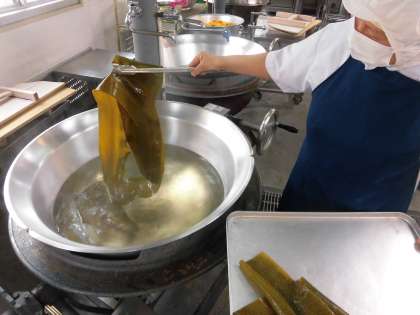 みそ汁のだしは、だしこんぶとけずりぶしでとっています。