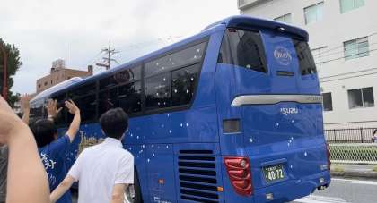 5年生は、先程、一泊移住の「出発式」を終え、バスに乗車し、出発しました。