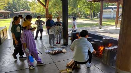 キャンプ場に到着後、午前中のメインとして、飯盒炊爨を行いました。