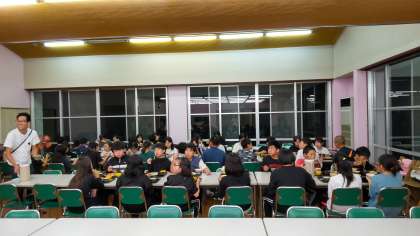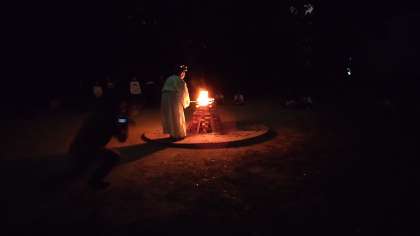 昨日のキャンプファイヤーでは、みんなで歌を歌ったり、「猛獣狩りへ行こうよ」のゲームをしたりして盛り上がりました。また、〇×クイズや怖い話などもしました。