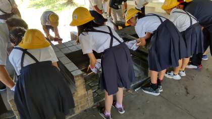 クラフト体験の後は、いつもより早めの昼食を摂り、閉舎式を行いました。2日間お世話になった宿舎の方にお礼を言って、次の見学先の大阪ガス科学館へ出発しました。