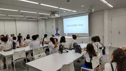 大阪ガス科学館到着後は、サイエンスステーションで、液化窒素を使ったマイナス196度の実験を見せてもらったり、館内の見学をしたりして、しっかりと科学について学んでいます。