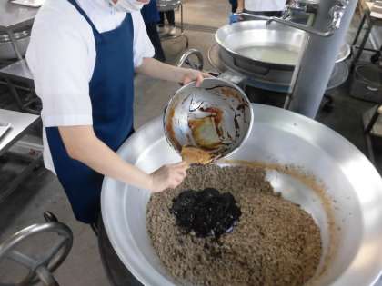 肉みそは、テンメンジャンや赤みそなどで味つけをしています。