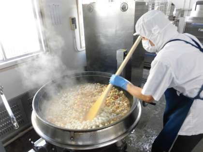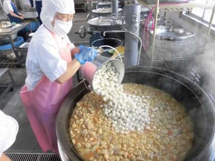 今日は、うずら卵を使っているので、卵アレルギーのある人には、卵を入れる前に取り除いて渡します。