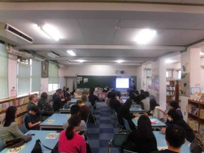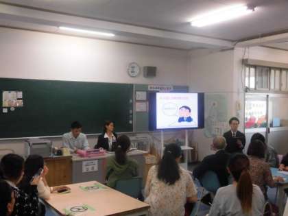 11月10日(金)、外国人の研究者(44人参加)の方々が学校訪問しました。まず初めに、「北巽小学校のSWPBSの教育実践の歩み」について説明しました。次に、4グループに分かれて、子どもたちの授業の様子を参観しました。