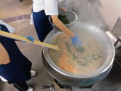 スープには、食物せんいが多く含まれている押麦が入っています。