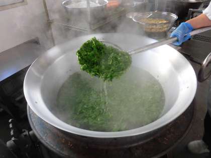はくさいときくなは、どちらも冬が旬の野菜です。きくなは少し苦みがある野菜ですが、はくさいと一緒にごまあえにすることで、食べやすくなっています。
