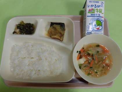 ・さばのみぞれかけ ・すまし汁 ・こまつなの煮びたし ・ごはん ・牛乳  です。