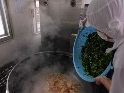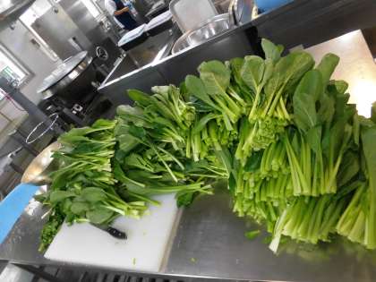 今日は、福岡県産のこまつなを、鶏肉と一緒に煮びたしにしています。