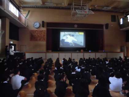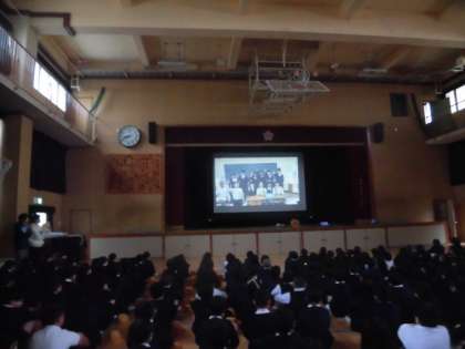 今日の児童朝会では、運営委員会が作成したPBS動画を見ました。今月の生活目標「やくそくを守ろう」について、発表がありました。「手洗いをきちんとしよう」や「廊下は右側を歩こう」等、悪い例と良い例を実演してとても分かりやすかったです。