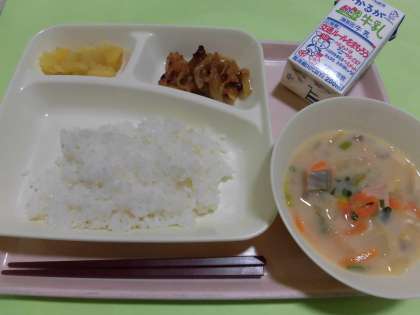 ・鶏肉の甘辛焼き ・かす汁 ・くりきんとん ・ごはん ・牛乳 です。