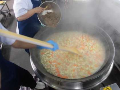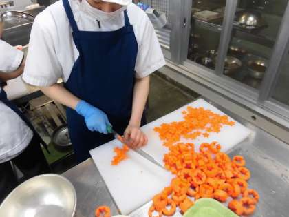 今日の給食に初めて出るスイートポテトは、アレルギーの原因になるバターや牛乳、クリーム、卵を使っていないスイートポテトです。