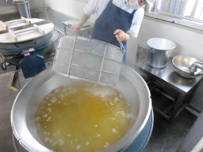 「船場汁」は大阪の郷土料理で、こんぶのだし汁でさばのあらとだいこんを煮て、塩で味を調える料理です。給食では、さばの代わりにさけを使った、すまし汁にしています。