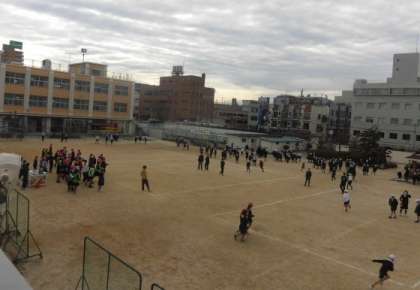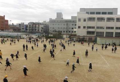 運動場いっぱいに広がって、鬼ごっこを楽しみました。6年生とのふれあい活動も少なくなってきました。