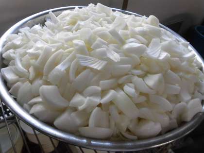 今日のたまねぎは、今が旬の新たまねぎで、白い色がとてもきれいでした。