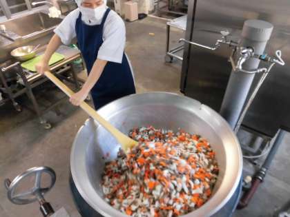 カレーライスには、調理員さんからのラッキーにんじんのプレゼントも入っています。
