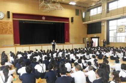 今年度も、学校全体で、子ども(1年生〜6年生)も、大人も(北巽小学校の教職員、保護者のみなさん、見守り隊や地域の方々)も、みんなで取り組むポジティブ行動支援「学び魂」「くらし魂」「想い魂」「もえろ!きたたつ魂!」を実施していきます。今日の児童朝会では、児童会運営委員会からの発表がありました。