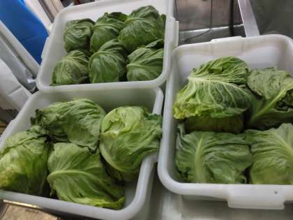 今の時期のキャベツは、葉がやわらかく、甘みがあるのが特ちょうの、春キャベツです。