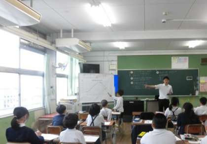 今日は、折れ線グラフを見て、神戸市の気温の変わり方を調べました。折れ線グラフでは、線のかたむきに注目すると、変わり方が詳しくわかるなど学ぐことができていました。