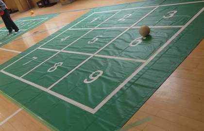 枠の中にボールを入れるのは、なかなか難しく、そろった時の喜びは格別です。どのチームを、楽しみながらも熱戦となっていました。