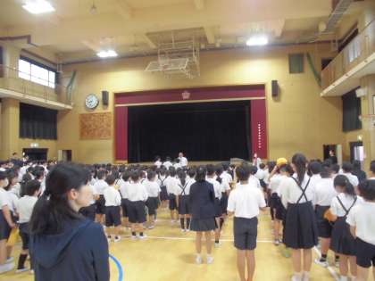 今日は5月最後の全校朝会がありました。今週の目標は、「気持ちをこめて給食のあいさつをしよう」です。感謝の気持ちを込めて挨拶をし、給食を美味しくいただきましょう。