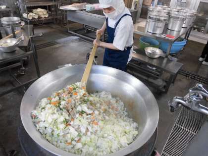 「八宝菜」の八宝とは、八種類ではなく、たくさんの材料を集めて作ったという意味です。卵アレルギーのある人には、うずら卵を入れる前に取り除いて渡します。