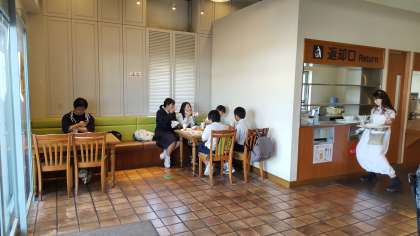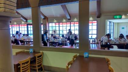 まずは腹ごしらえ。グループごとに行きたいお店を決め、ミールクーポンを使って思い思いのメニューでランチタイムです。