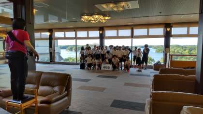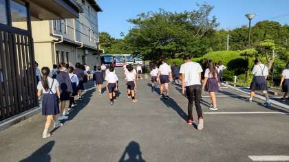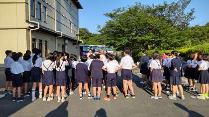 朝の様子です。眠たい目をこすりながら、宿舎駐車場で体操をして体を起こしました。