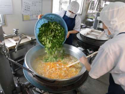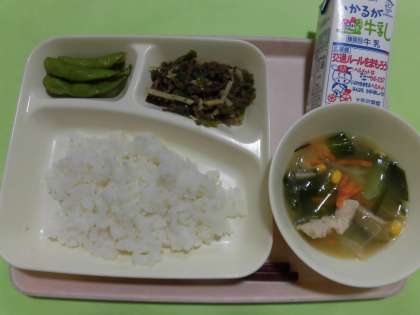 ・チンジャオニューロウスー ・中華みそスープ ・えだまめ ・ごはん ・牛乳  です。