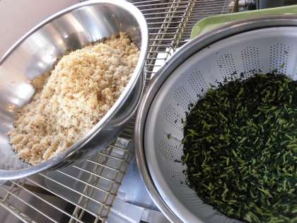 ささみとだいこん葉をいためて味つけした、ごはんがすすむ献立です。