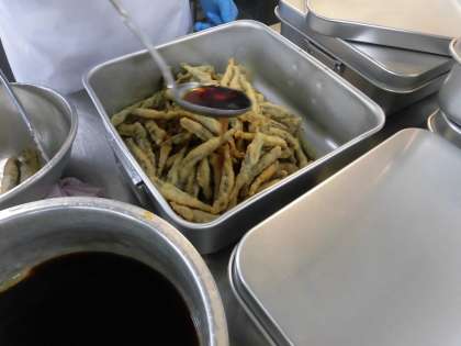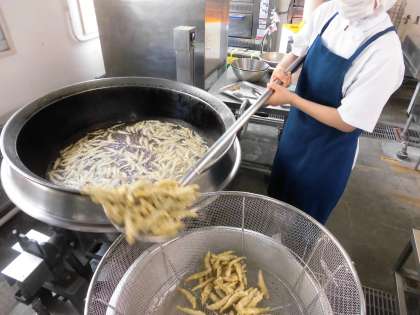 「いわしてんぷら」は、砂糖、みりん、米酢、こいくちしょうゆで作ったタレをかけています。