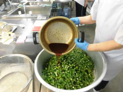 今日は、「オクラの梅風味」に梅を使って、さっぱりと食べやすくしています。