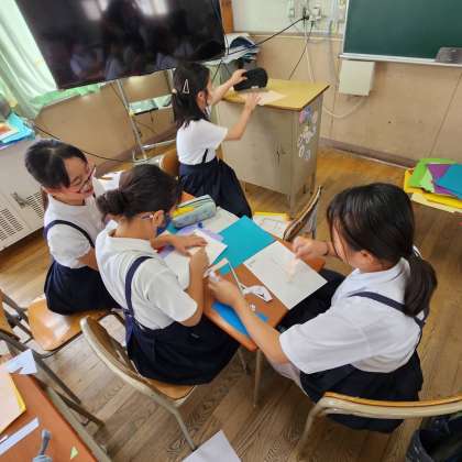 台風の影響でハギハッキョが学年ごとの分散開催となりました。昨日は、6年生のハギハッキョが行われました。6年生は、韓国・朝鮮について、講師の先生にたくさんのことを学習させていただきました。講師の先生の講話では、一生懸命話を聞く姿が見られ、積極的に質問している様子がみられました。また、民族衣装カードも作り、いろんな色の民族衣装カードを作ることができました。