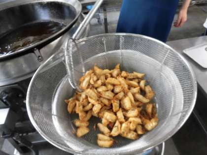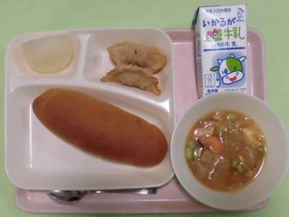 ・あげギョーザ ・鶏肉ととうがんの中華煮 ・なし(豊水) ・黒糖パン ・牛乳 です。