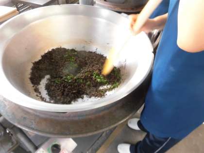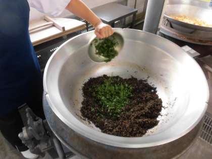 牛肉とひじきを甘辛く味つけし、しそで風味をつけたそぼろです。
