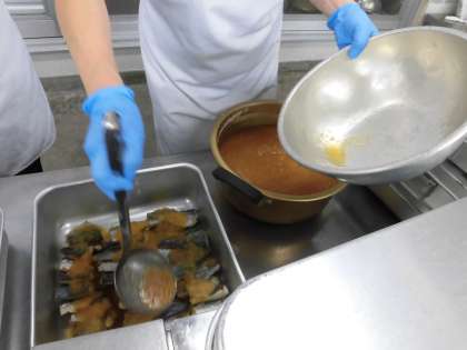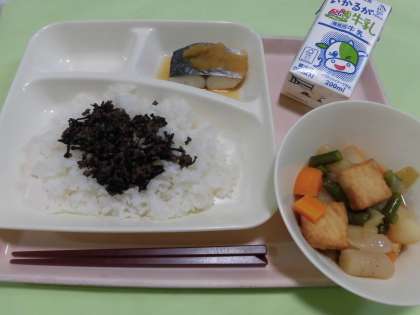 ・さごしのおろしじょうゆかけ ・含め煮 ・牛ひじきそぼろ ・ごはん ・牛乳 です。