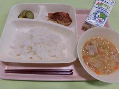・あかうおのしょうゆだれかけ ・豚汁 ・きゅうりのゆず風味 ・ごはん ・牛乳 です。