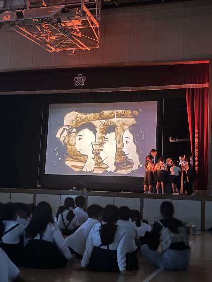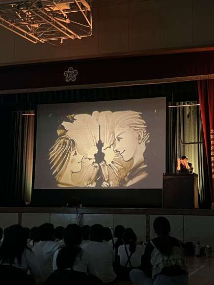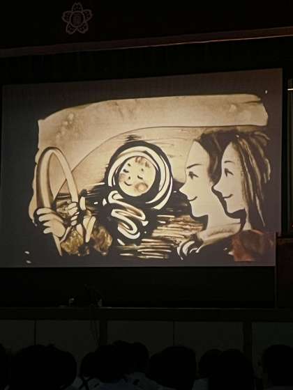 今日は芸術鑑賞会があり、児童たちはサンドアートを鑑賞しました。