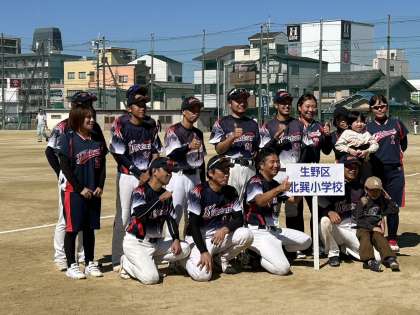 北巽小学校PTA男子ソフトボールチームが、生野区代表として出場しました。結果は中央小学校に一回戦で敗退してしまいましたが、この中央小学校が東ブロック大会の優勝チームでした。その優勝チームから得点を取ったのは、なんと北巽小学校だけでした。