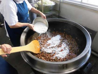 今日のグラタンは、上新粉でとろみをつけて、米粉で作ったマカロニとパン粉を使っています。なすが苦手な人にも食べやすいグラタンです。