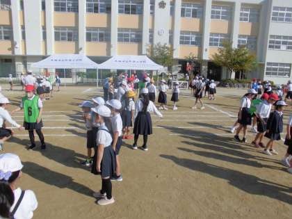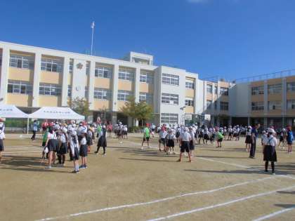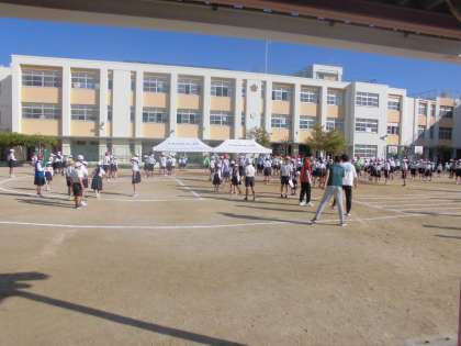 毎週木曜日は児童集会の日です。集会委員により大縄跳びが開催されました。みんなで10回跳ぶなどの目標を決めて、一生懸命がんばりました。高学年の児童が低学年の児童にやさしく接する場面も見られました。