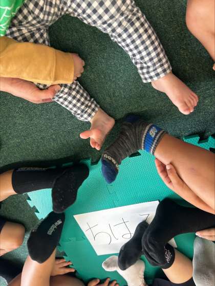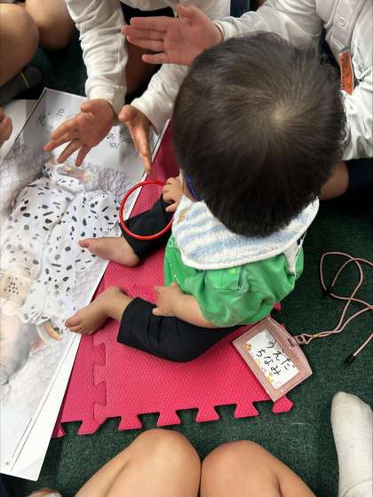 赤ちゃんと手や足の大きさを比べたり、最近できるようになったことを教えてもらったりしました。
