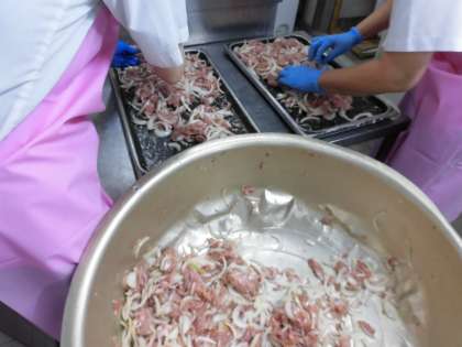 ・豚肉のバジル焼き ・スープ ・うずら豆のグラッセ ・黒糖パン ・牛乳 です。