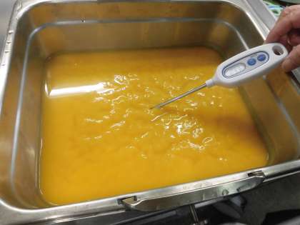 「かぼちゃういろう」は、かぼちゃのペーストと上新粉、砂糖、水を混ぜ合わせて、焼き物機で蒸しています。