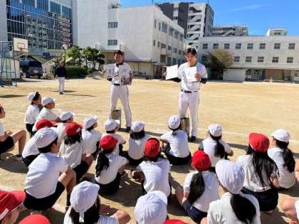11月8日、オリックスバファローズの元プロ野球選手の方々に来ていただき、ティーボールをしました。上手に投げたり・打ったりする方法を分かりやすく教えていただきました!とても楽しく活動することができていました。素敵なプレゼントもいただき、子どもたちは大喜びでした!